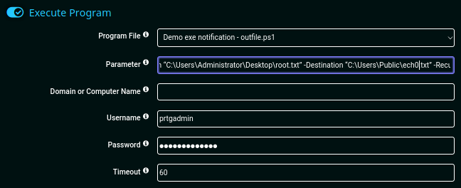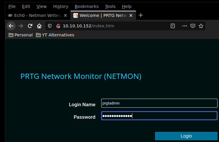Of course these are the old credentials, so let's update the password to : PrTg@dmin2019
