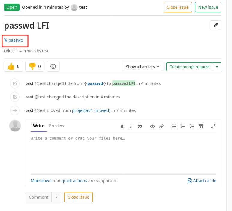 And once the issue is moved, you will see that the passwd file is linked: