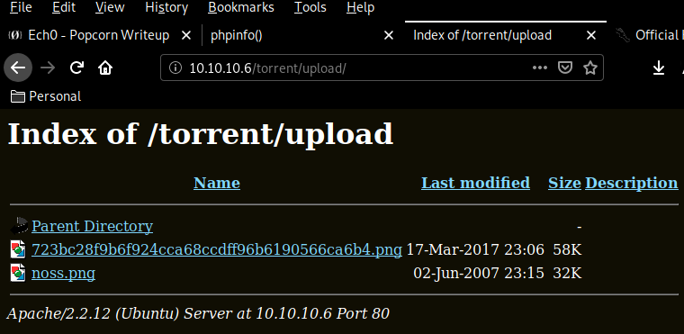 www-data@popcorn:/var/www/torrent/upload$ ls