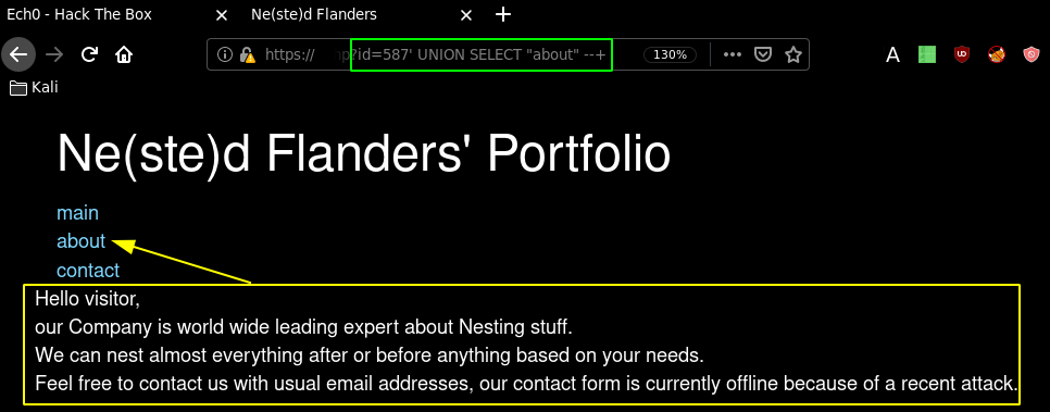 β†’ sqlmap -u https://www.nestedflanders.htb/index.php\?id\=587 -p id