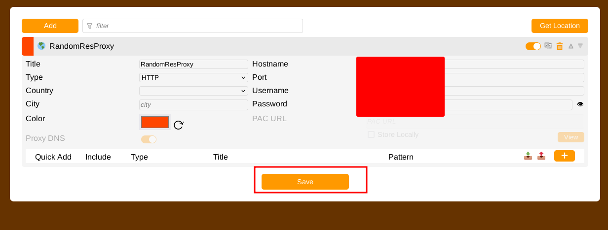 In this demo, the proxy is HTTP; if you use a different provider and it doesn't work, try to check the protocol. Fill all the info and save it.