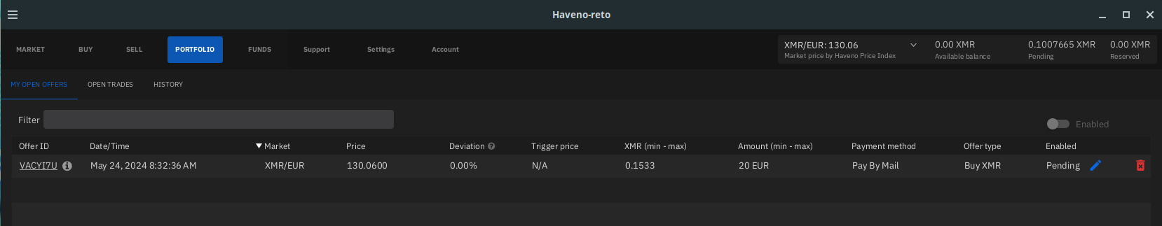 5. βœ… Haveno DEX Bank Transfer (ex: SEPA) -> XMR transaction