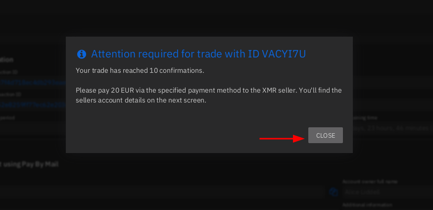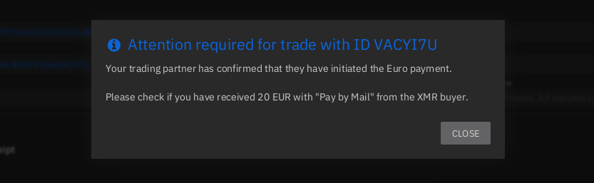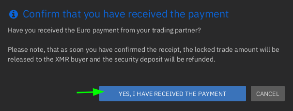 And lastly, Bob sees that the funds are arriving on his Haveno client, and now he closes the trade.