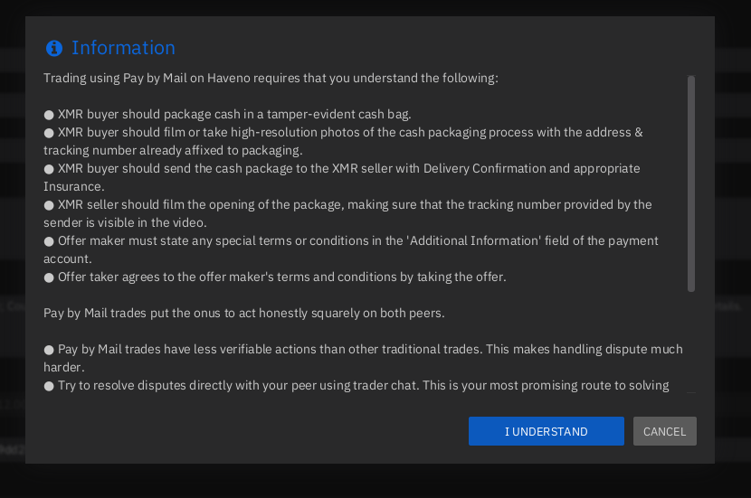 6. βœ… Haveno DEX Cash By Mail -> XMR transaction ⭐