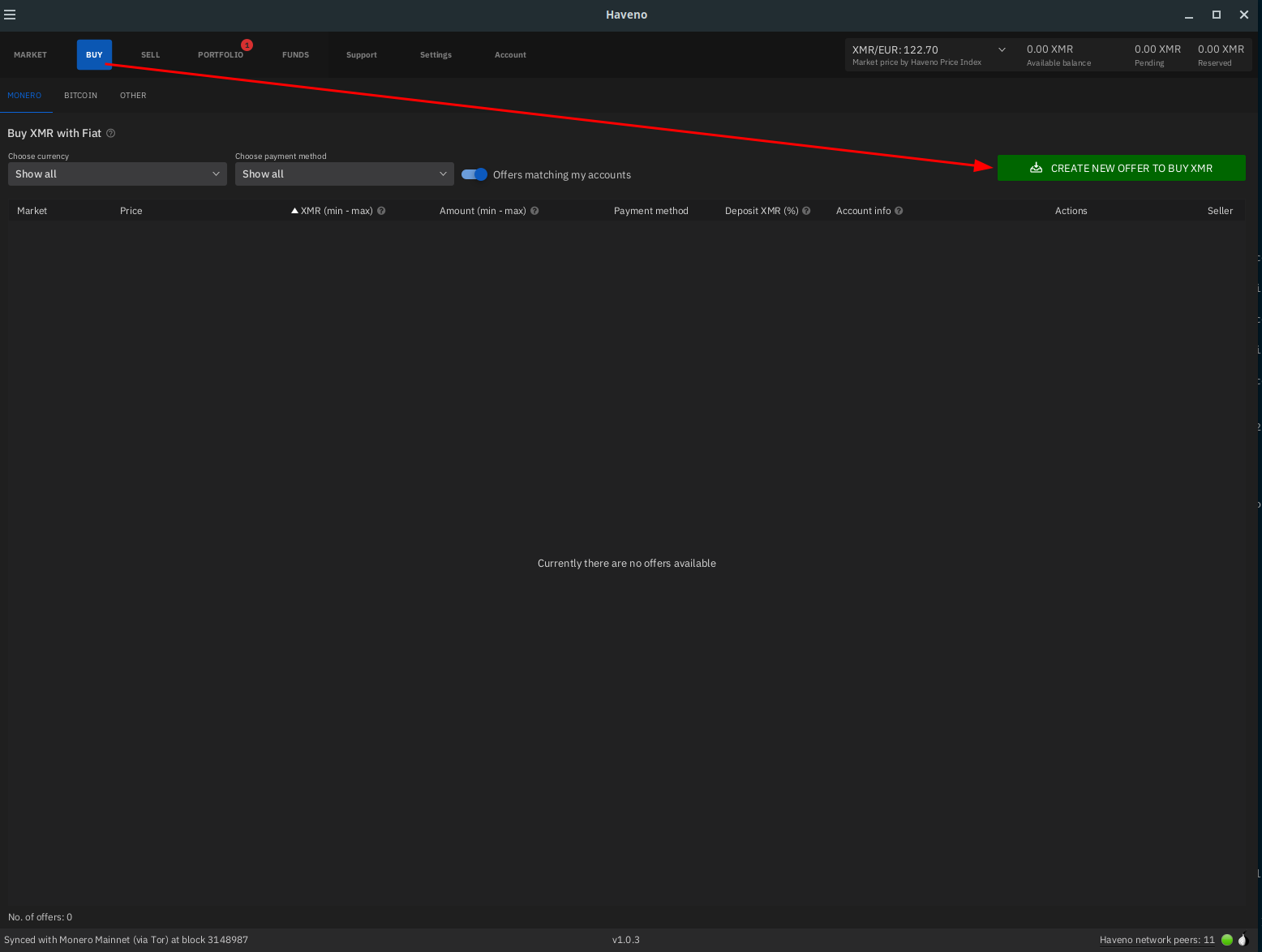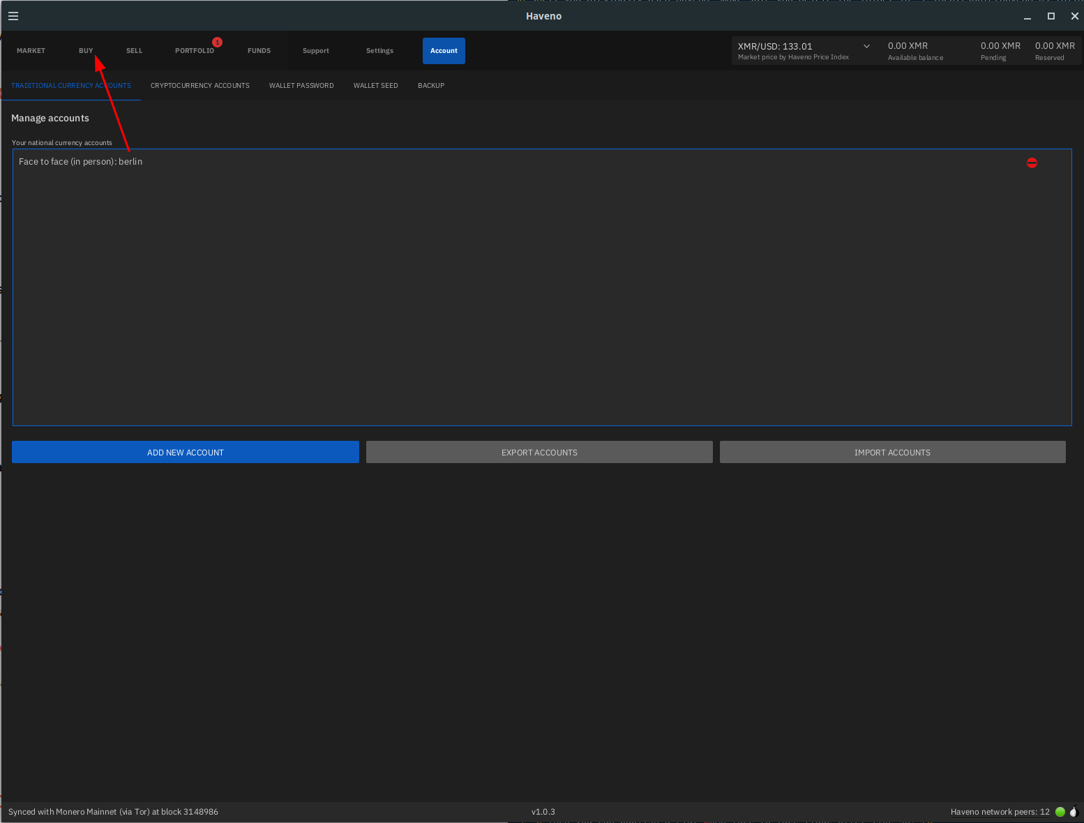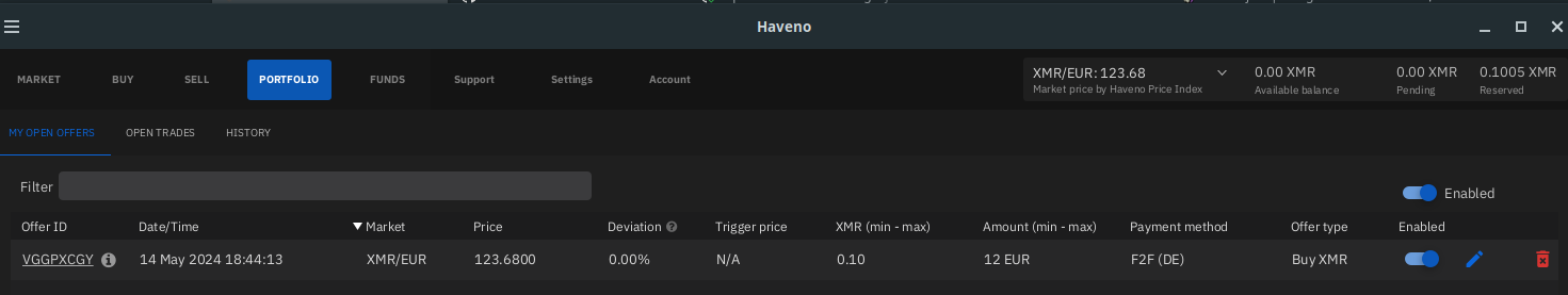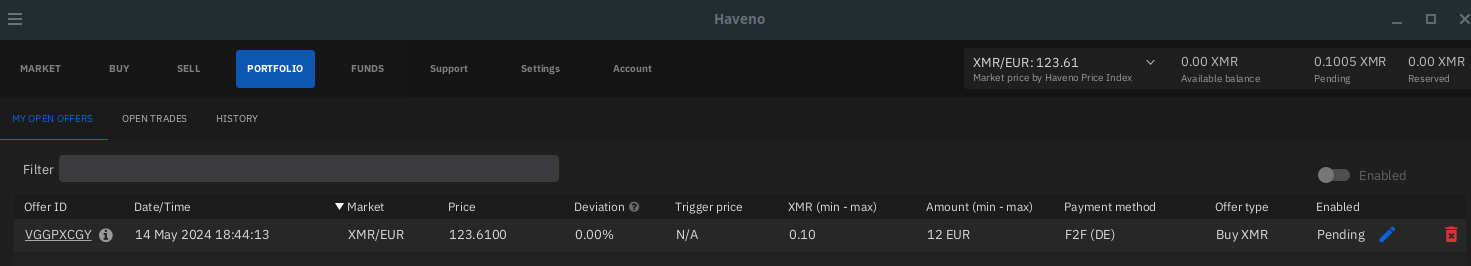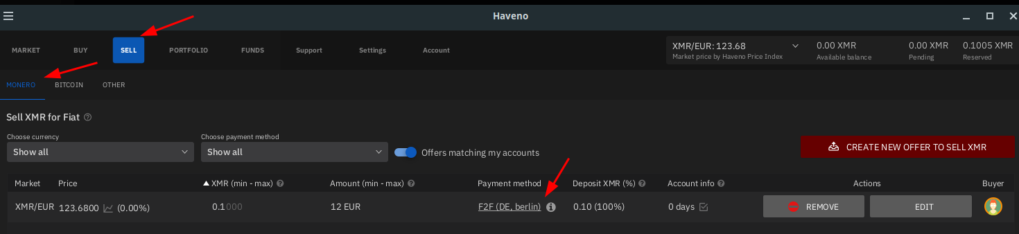 Sidenote : i don't recommend face-to-face as a payment option of choice, this is just to try out how a basic trade Haveno DEX works!
