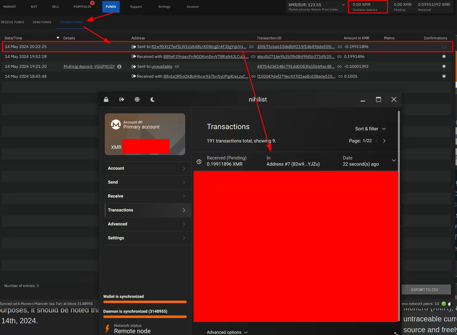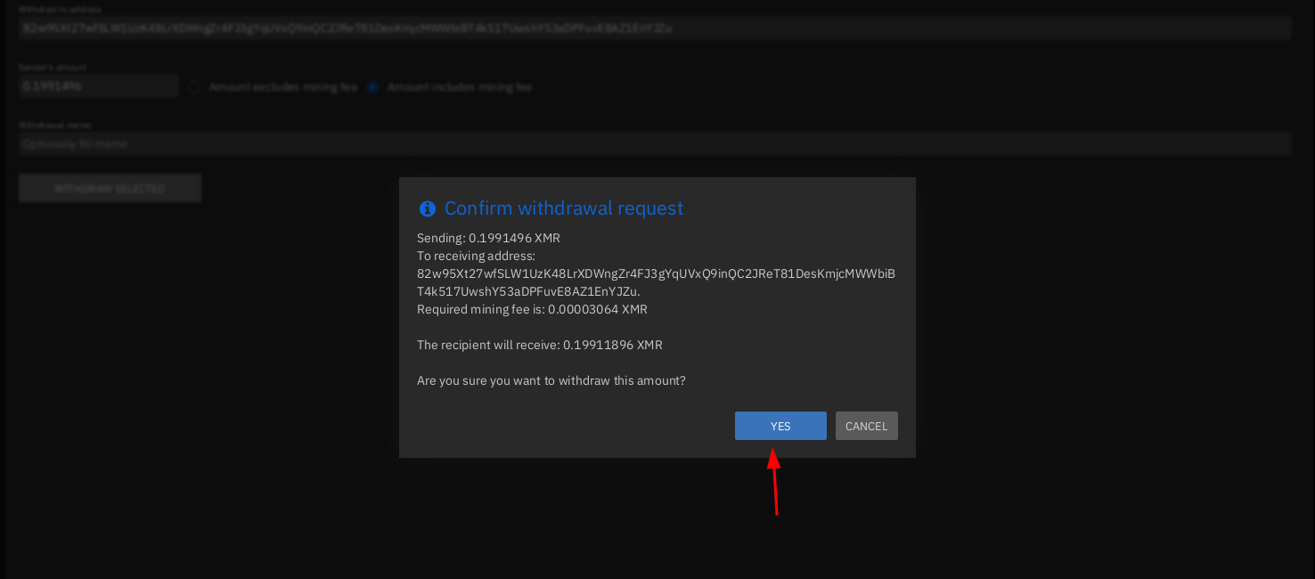 Then confirm that you want to withdraw the funds, and check your monero wallet for the incoming transaction: