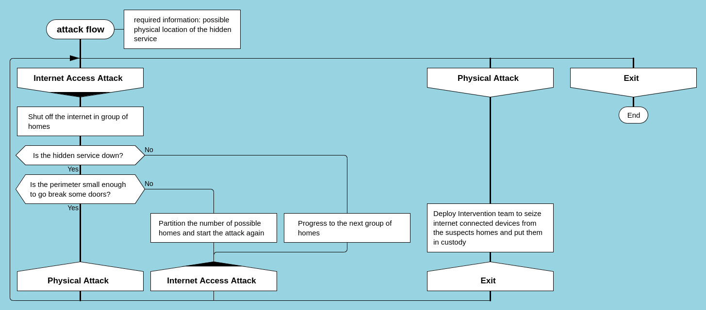 This Diagram shows where the attack takes place and how a redundant setup prevent such attacks from confirming the physical location of the hidden service.