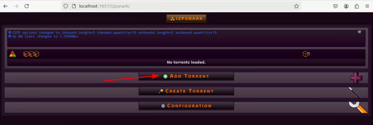 With I2P up and running, we can now configure the built-in torrent app called I2PSnark.