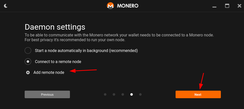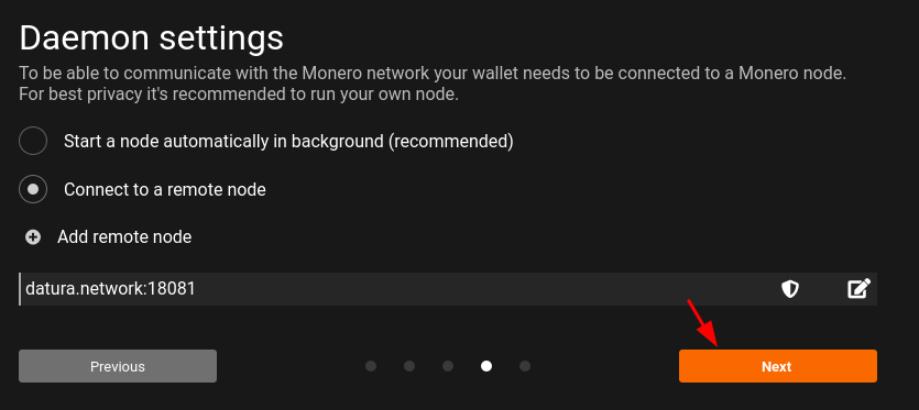Here we pick a clearnet monero node (if you don't want to, scroll down to know how to setup a .onion monero node)