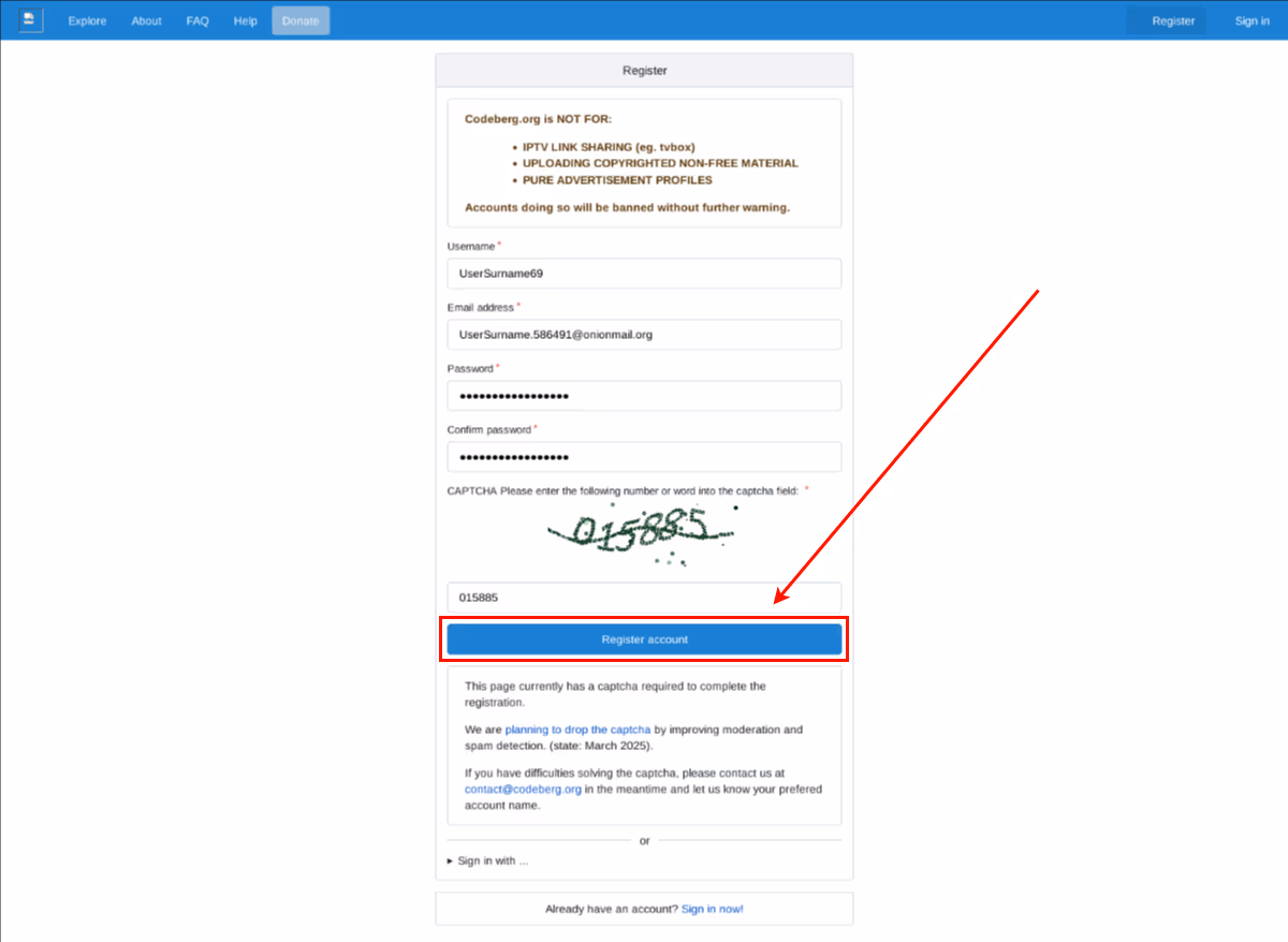 1. Register on Codeberg