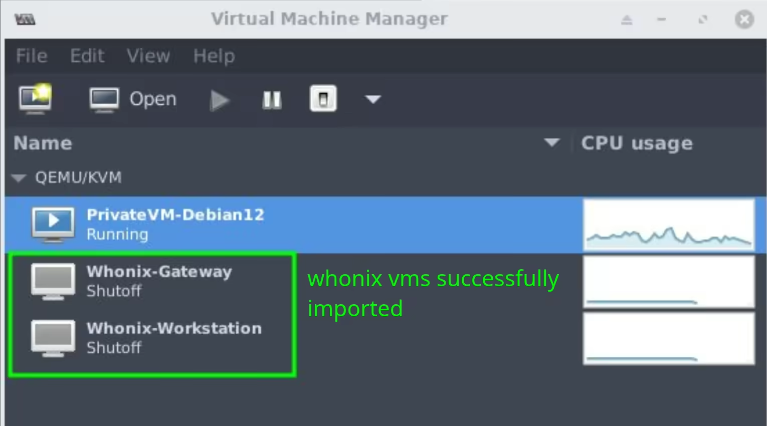 And now that the sensitive VMs are listed in virt-manager, we open them: