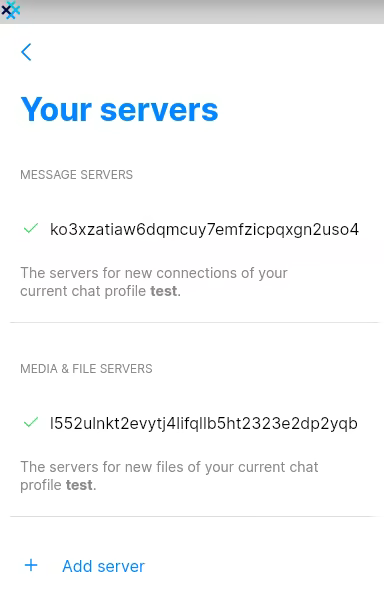 Here I'm turning off all default servers and adding my own newly created SMP and XFTP servers: