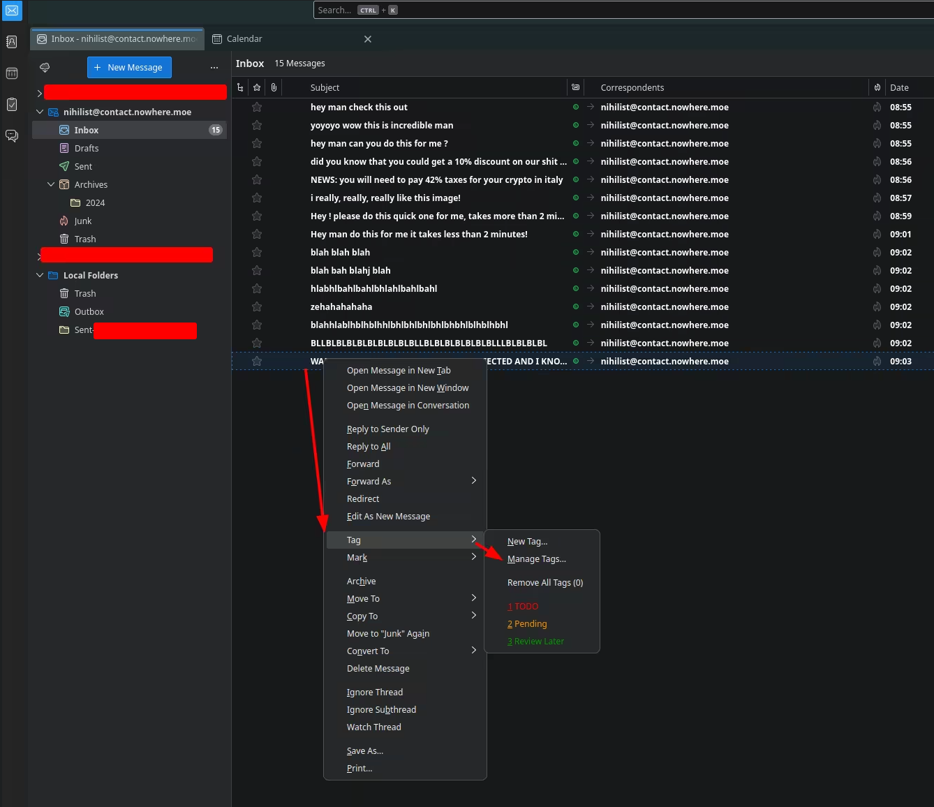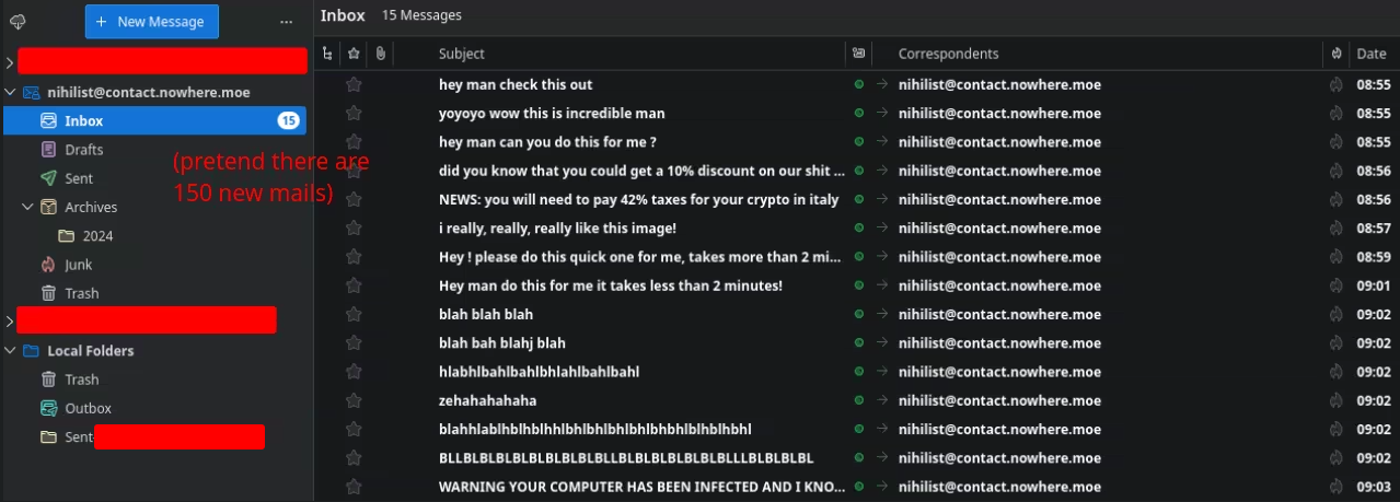 And then as you probably guessed we recieved alot of spam, so to select them in one go we can either do "CTRL + LEFT CLICK" or "SHIFT + LEFT CLICK" to select more than one at a time, to archive them.