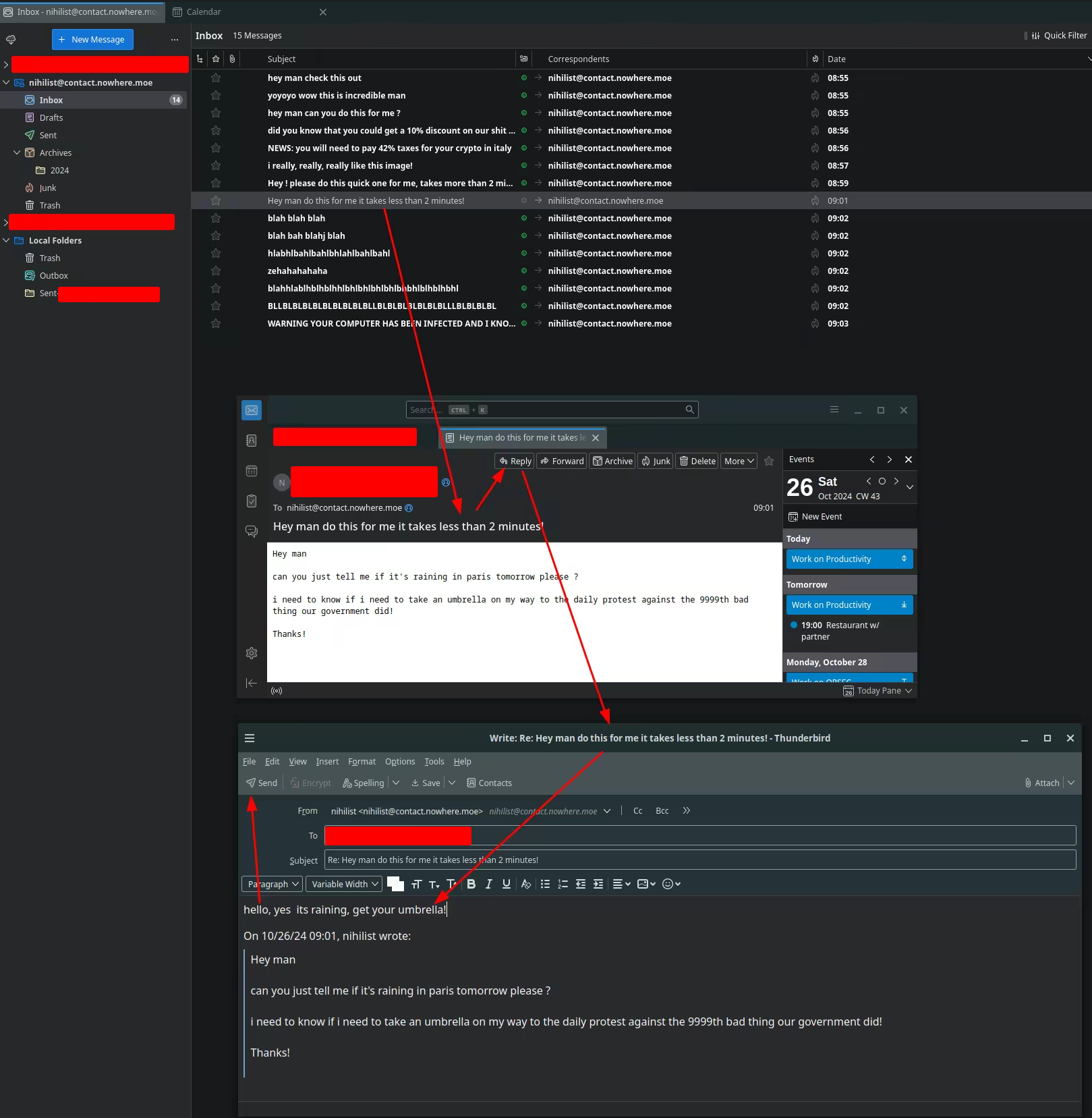 And once a mail is no longer needed / if it got actionned / if you actionned it / if you responded to it, you need to archive it , so that it doesnt occupy any space in your mailbox anymore, and it doesn't potentially distract you from the mails that matter the most.