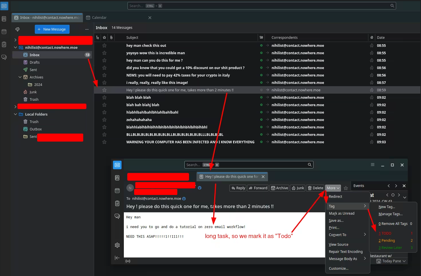 Label it Red "Todo" if it takes more than 2 minutes for you to action it